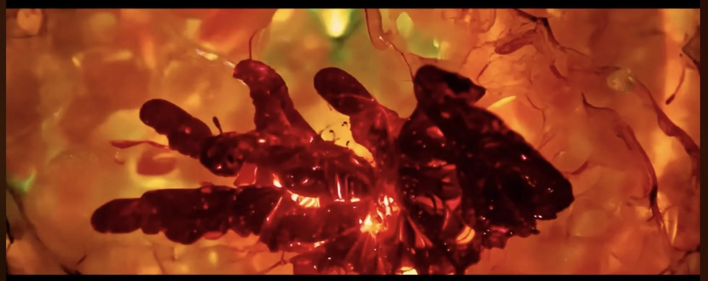Our narrative first depicts a Deep Fake Oracle delivering words of encouragement to follow her signal. A seeker (The Rider) follows this signal in the barren desert, in turn followed by a paramilitary drone. The Rider approaches an abandoned mine and confirms his course by encountering a plaque bearing the decimal numogram, a symbol for time sorcery. He sends a picture of the object to a colleague (The Operator) and descends into the shaft. In the darkness, he confronts a sea of phantom bodies who awaken the mountain spirits. The Operator finds their neuro-engineer, Chopper in an effort to stave off any danger their collective may face. WhenThe Rider makes it out of the shaft, he comes upon a fellow seeker (The Viewer) watching the Deep Fake Oracle on a laptop in a blown out shelter. When the paramilitary force executes its target, The Viewer disappears and The Rider contentedly takes her place.